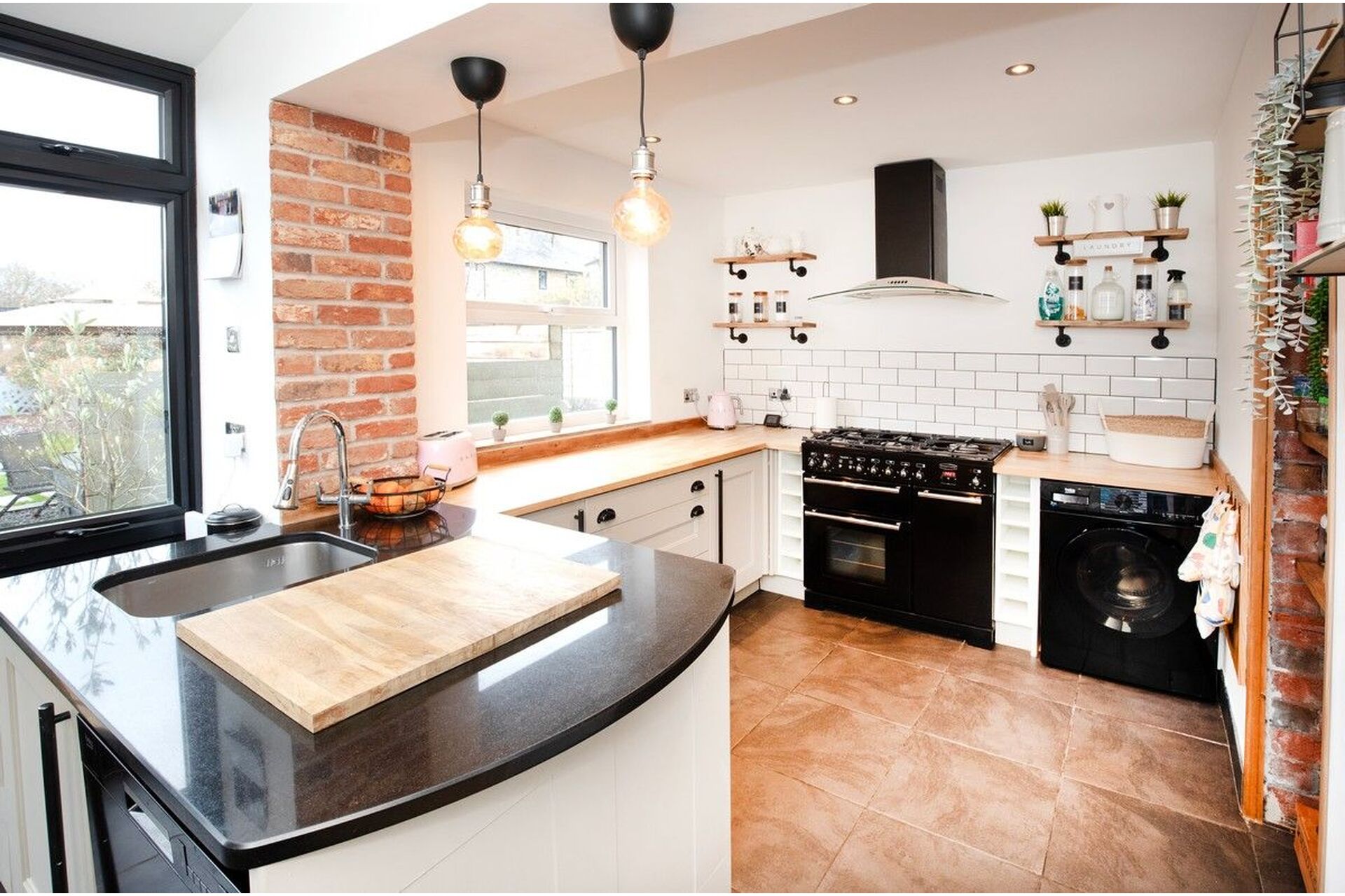 Incorporating a range of modern base units with tall panty cupboards, both wood and granite work tops over the base units with a under mounted stainless-steel sink. A Range Master dual fuel cooker is included in the sale. Appliances include a integrated fridge freezer, plumbing for a washing machine and dishwasher. Double glazed window. External door providing direct access to the rear garden.