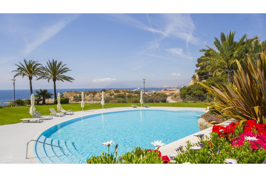 A two bedroom, two bathroom luxury front line apartment located in an exclusive residential complex in Mascarat Beach, Altea. The complex has 24h security, direct access to the beach and Marina, 3 outdoor pools, spa with heated indoor pool, sauna, paddle, tennis court and gym. The apartment consists of 2 bedrooms, one bedroom with en-suite bathroom and dressing room, another bathroom, living/dining area, separate kitchen, laundry room and spacious terrace overlooking on the pool and sea. The Mascarat Marina is next door with shops, restaurants and water sports etc.