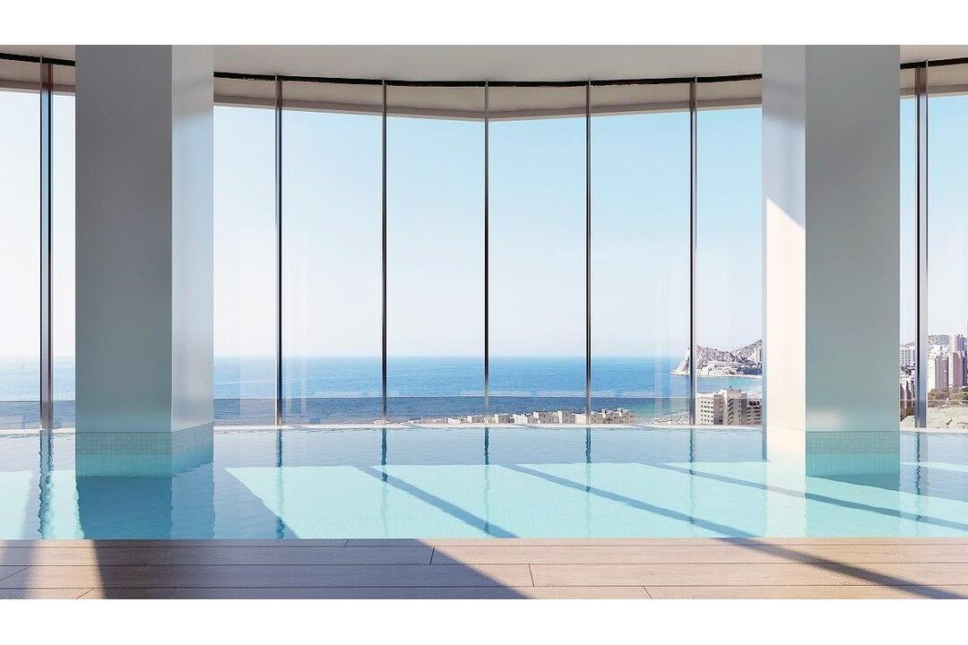 Located in Benidorm Next to Playa de Poniente. New residential with sea views with 220 homes with 2, 3 and 4 bedrooms in a glass tower with spacious terraces with views. Equipment : Appliances: Hood, Oven and touch-control induction hob, Refrigerator, Dishwasher, Washing machine, Pre-installation for dryer and microwave. Shower screen with safety glass, Mirror, Lighting with LED spotlights Air-conditioning Aerothermal The common areas are equipped with a swimming pool for adults, a children's pool, spa, jacuzzis, chillout, children's play area, two paddle tennis courts. Heated pool and gym on the 26th floor with great views of the sea. Coworking area. Each house has a parking space and a storage room included in the price. The Alicante coast is well known for its mild temperatures and more than 300 sunny days a year. Known for its unrivaled hotel, sun and beach infrastructures, combined with a wide gastronomic variety, both traditional Spanish, Basque or Valencian, as well as other international varieties adapted to all tastes and the desire to experiment. It has different golf courses just 5 minutes away from Sierra Cortina, Golf Bahia, three theme parks and several shopping centers.