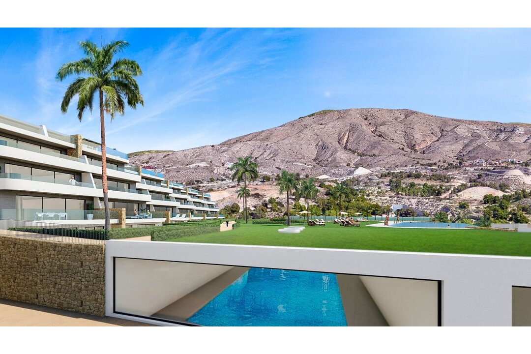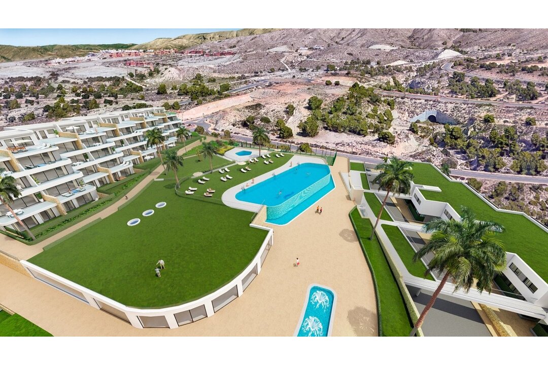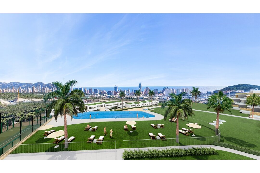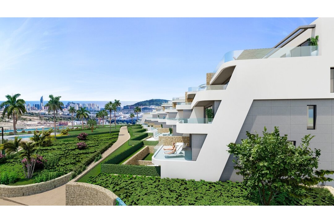 NEW BUILD LUXURY RESIDENTIAL COMPLEX WITH SEA VIEWS IN FINESTRAT New Build Luxury residential complex of bungalow apartments, duplexes and penthouses in Finestrat. Beautiful apartments has 3 bedrooms 2 bathrooms, open plan kitchen with the lounge area, fitted wardrobes and terrace. Each property has private parking space and storeroom. A complex with large common areas: -Infinity pool -Paddle courts -Covered heated pool -Gym -Meeting room and shared work -A large pedestrian and bicycle path that runs through all the common spaces. -Large masses of vegetation This development is perfectly located in a natural enclave of the Costa Blanca and offers incredible views of the Benidorm skyline, Finestrat cove and El Puig Campana. Benidorm is just a five-minute drive from the properties and offers all the services you would need including shops, bars, restaurants, supermarkets, banks, pharmacies and several private international schools. Close to the beaches of Levante, Poniente and Cala de Finestrat, with more than 6km in length that are among the best in Europe awarded by the European Union with Blue Flags. All leisure services such as the theme parks of Aqua Natura, Terra Mtica, Terra Natura, Aqualandia and Mundomar, Sierra Cortina and Villaitana Golf courses, hiking and climbing in Puig Campana an incomparable natural setting or enjoy of nautical sports. Distance to the sea 4 km, to the airport 26 km and to the golf 1km. Complex located 40 minutes from Alicante airport.