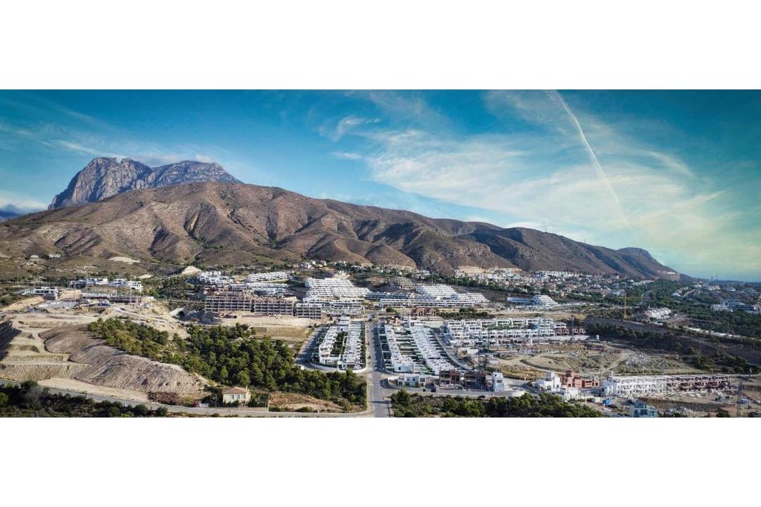 NEW BUILD RESIDENTIAL COMPLEX IN FINESTRAT New Build residential complex of apartments, penthouses and townhouses in Balcon de Finestrat. Beautiful ground floor apartments with private gardens, middle flor apartments with big terraces and penthouses with private solarium. Properties with 2 and 3 bedrooms, 2 bathrooms, open plan kitchen with the lounge area, fitted wardrobes, Installation of ducted air conditioning (hot/cold). The residential complex consists of community pool for adults with children's pool area and solarium, parking area for bicycles, children's play area tiled with continuous safety paving. All properties has private parking space with pre-installation for electric charging of vehicles. Residential complex perfectly located in a natural enclave of the Costa Blanca and offers incredible views of the Benidorm skyline, Finestrat cove and El Puig Campana. Benidorm is just a five-minute drive from the properties and offers all the services you would need including shops, bars, restaurants, supermarkets, banks, pharmacies and several private international schools. Close to the beaches of Levante, Poniente and Cala de Finestrat, with more than 6km in length that are among the best in Europe awarded by the European Union with Blue Flags. All leisure services such as the theme parks of Aqua Natura, Terra Mtica, Terra Natura, Aqualandia and Mundomar, Sierra Cortina and Villaitana Golf courses, hiking and climbing in Puig Campana an incomparable natural setting or enjoy of nautical sports. Distance to the sea 4 km, to the airport 26 km and to the golf 1km. Complex located 40 minutes from Alicante airport.