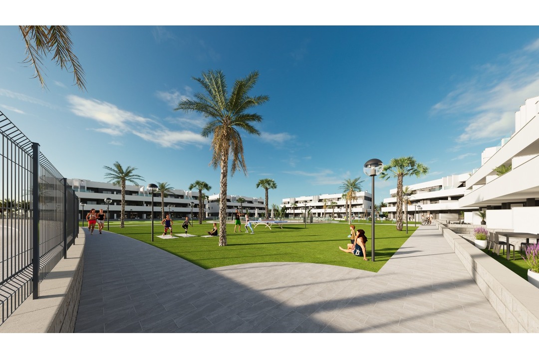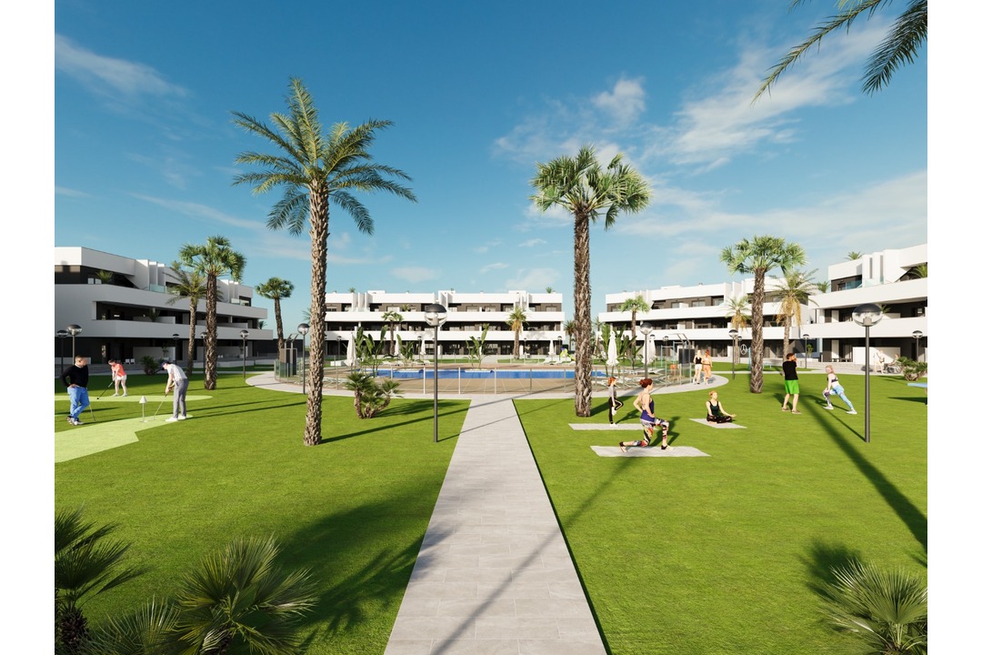 NEW BUILD RESIDENTIAL COMPLEX IN EL RASO New Build closed residential complex of touristic apartments in El Raso, Guardamar del Segura. This new residential complex will consist of 78 touristic apartments and penthouses distributed on the ground floor, first floor, and second floor + solarium. All properties will have a parking space and storage room in the basement, which will be accessible from the community stairs or from the elevator on each floor. The common areas will include a pool area, reception/meeting room, outdoor gym, ptanque area, mini-golf, and spa. DETAILS TO HIGHLIGHT IN OUR NEW DEVELOPMENT: RENTAL-ALLOWED HOUSING: These apartments offer something that no other can in this residential area. You can enjoy your home for 4 months a year for personal use, and the rest of the year it can be rented out, where you can obtain profitability without having to worry about anything, as a specialized rental company will manage everything for you. FULLY FURNISHED HOMES: all the homes in our new project will be fully furnished and ready to live in, with lighting, furniture, appliances, and fully finished bathrooms. VARIOUS TYPES OF HOUSING TO CHOOSE FROM: We offer various types of housing to choose from in different orientations. 2 bedrooms + 2 bathrooms and 3 bedrooms + 2 bathrooms types. All 3-bedroom homes will be corner units, making them even more exclusive for clients. Among these, we offer homes with South, East, and West orientations. All with terraces/porches facing the green area and Laguna de La Mata. UNBEATABLE VIEWS OF THE LAGUNA DE LA MATA: From all the first and second-floor homes in our new development, you can enjoy privileged views of the Laguna de La Mata. Being the last development adjacent to it, you will have a dreamlike panorama of this natural setting. PROXIMITY TO THE BEACH: Just 10 minutes by car or 15 minutes by bike, you can enjoy Moncayo Beach. CLOSE TO SHOPPING CENTERS AND URBAN AREAS: Located just 10 minutes by car from the Habaneras shopping centre, 9 minutes from the dining and entertainment area of Ciudad Quesada, or 8 minutes from the centre of Guardamar del Segura, making our development have an unbeatable location. GOLF COURSES: For lovers of this sport, it's worth mentioning that just 15 minutes by car, you can enjoy one of the best golf courses in Spain, located in the La Finca de Algorfa urbanization. Also, note the beautiful golf courses of La Marquesa and Vistabella, which are 10 and 20 minutes by car respectively. Complex located 30 minutes from Alicante airport and 1 hour Murcia - Corvera airport.