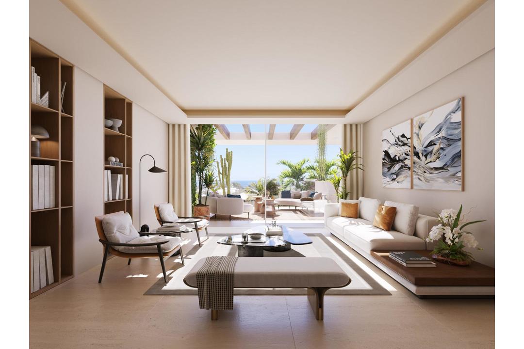 LUXURY HOMES ON MARBELLA'S GOLDEN MILEExclusive complex of 28 flats and penthouses with 3 and 4 bedrooms, all with en-suite bathrooms, carefully distributed in four architecturally distinct blocks called Agua, Piedra, Madera and Arena, optimising privacy between neighbours. Ground floor flats with private gardens, first floor flats with spacious terraces, and penthouses overlooking the sea and mountain views with magnificent terraces and solariums with private swimming pools. Each flat is equipped with sophisticated home automation and offers two parking spaces and a storage room, as well as pre-installation for electric car charging.Gated community with 24h security. Lush gardens with a stunning outdoor saltwater swimming pool, spa, indoor heated pool with a beautiful waterfall, fully equipped gymnasium, yoga room, and saunas, create a haven of tranquillity and peace for residents. Families with young children will enjoy the community clubhouse and children's pool. Located in the heart of Marbella's Golden Mile, just a few minutes' walk from the iconic Marbella Club Hotel. Marbella is considered the capital of the western Costa del Sol. Bathed by the sea and sheltered from the mountains, with splendid and extensive beaches with calm waters, marinas, its 21 golf courses, and a wide gastronomic offer, from the typical beach bars and tapas bars, to the most luxurious Michelin-starred restaurants. All this, coupled with its microclimate with 320 days of sunshine a year, makes Marbella one of the most sought-after destinations in Spain to live in.