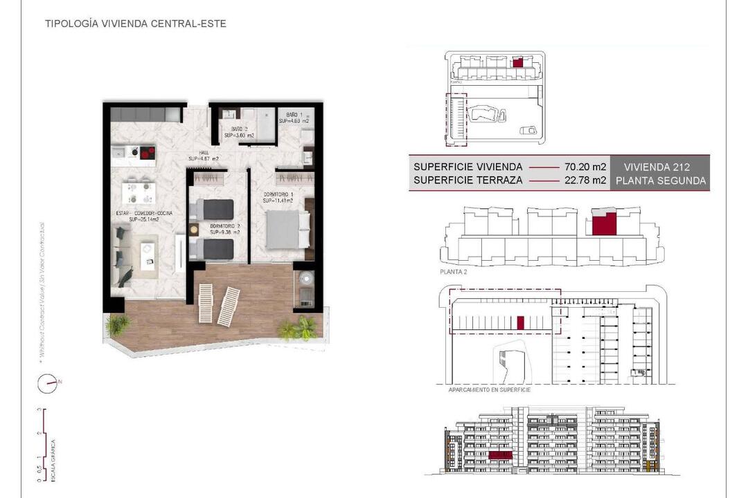 New residential development in San Miguel de Salinas, a stone's throw from the centre Spacious apartments with impressive amenities This newly built residential complex in San Miguel de Salinas offers modern 2-bedroom apartments with spacious terraces, carefully distributed over seven floors. The gated community offers first-class facilities, including separate swimming pools for adults and children, lush green areas, a children's playground and a petanque area. Privileged location on the Costa Blanca Nestled in the charming town of San Miguel de Salinas, this development enjoys a strategic location on the Costa Blanca. It is within walking distance of the town centre, where you will find all the essential services for daily life, including shops, restaurants and health centres. The property is a short drive from several points of interest: Las Colinas and Campoamor Golf Courses: Just 7 km away, perfect for golf lovers. Beaches of Orihuela Costa and Torrevieja: Located approximately 10 km from the residence, they offer beautiful sandy shores. Shopping Centres: Zenia Boulevard, a popular shopping destination, is only 9 km away. Alicante Airport: 50 km away. Murcia Corvera Airport: About 55 km away, ideal for regional connections. High-quality specifications Each apartment is designed with modern finishes and functionality in mind: Fully equipped kitchens with appliances included. Motorised blinds. Security entrance door. Hot water by aerothermal energy. Fully installed ducted air conditioning. LAUNCH OFFER: Furniture pack included for the first units sold. In addition, all apartments include a designated parking space. About San Miguel de Salinas San Miguel de Salinas is a picturesque municipality in the Vega Baja del Segura region, which forms part of the vibrant Valencian Community. Located near the border with Murcia, the town offers stunning views of the Torrevieja and La Mata lagoons, as well as a peaceful, family-friendly atmosphere. Your new home awaits Whether you are looking for a holiday retreat or a permanent residence, this new development in San Miguel de Salinas combines luxury, comfort and an unbeatable location. Contact us today to schedule a visit and take the first step towards owning your dream home on the Costa Blanca.