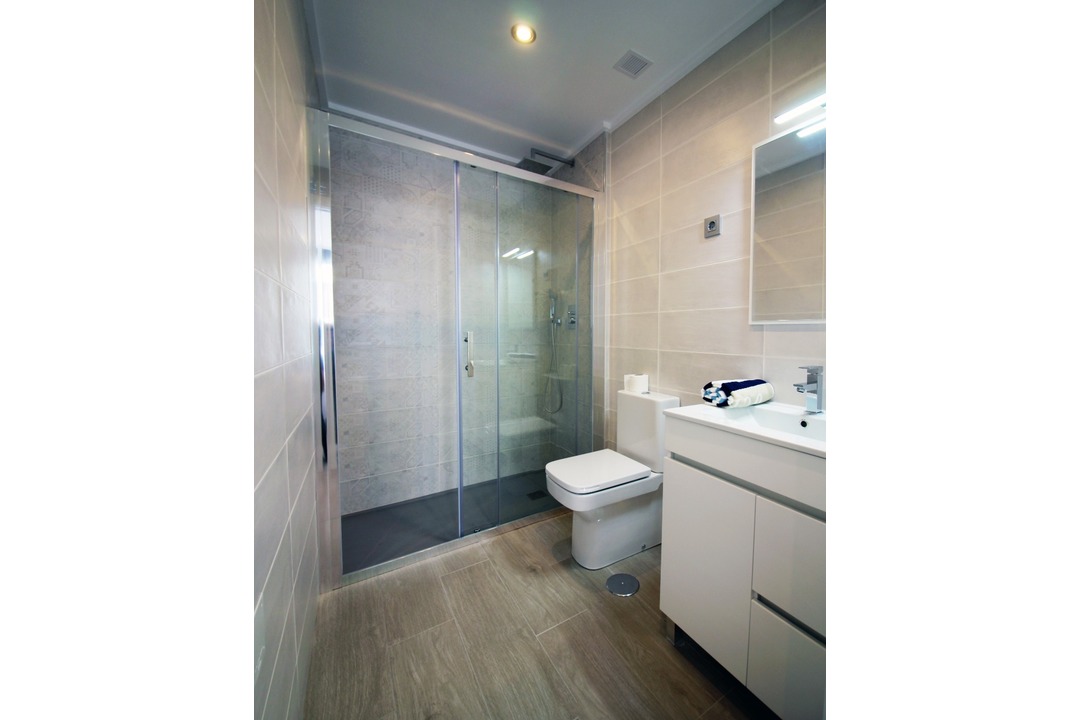 This new development is key ready. It comprises of 2-bedroom 2-bathroom first floor penthouse apartments with a private roof top solarium and 3-bedroom 2-bathroom ground floor apartments with front and rear garden and direct access to the communal gardens and pool area. The bathrooms are fully equipped with all furniture and shower screens with heated floors. The floors are heated in both bathrooms, kitchens and living areas. The interior and exterior lighting pack is included as well as the electrical appliances in the kitchen and automatic shutters on the windows. The communal areas are finished to a high standard with low maintenance gardens, swimming pool and a heated Jacuzzi for all year use. The property is just a short walk to the sandy beaches of Torre de la Horadada and with a marina and all amenities close by.
