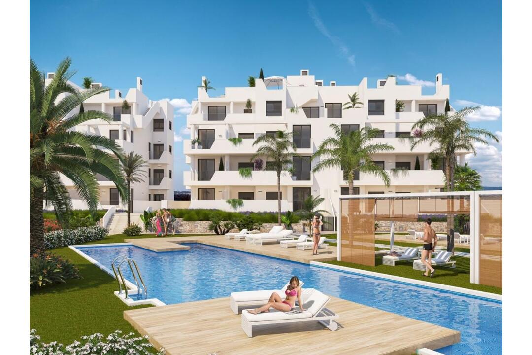 NEW BUILD RESIDENTIAL IN PRIVATE GATED RESORT IN PROVINCE OF MURCIA New Build residential complex has 60 apartments distributed in 4 blocks with terraced area for ground, first and second floors, community swimming pool, heated swimming pool and solarium with Summer kitchen on the penthouses, to enjoy all hours of sunshine every day of the year. The properties have 2 bedrooms and 2 bathrooms as well as parking space and storage room in the basement. These homes are designed with a contemporary style and open planned concept, comprising a fully-fitted kitchen and lounge-dining room. The properties will meet the highest standards and included: Kitchen completely furnished and equipped with oven and microwave in column, integrated fridge and dishwasher, induction hob and extractor fan. LED Lighting: inside the property (dining room, kitchen, corridors and bathrooms), and as well as in outdoor areas. Lined wardrobes with drawers. Motorised blinds in bedrooms. Heated floors in bathrooms. Fully fitted bathrooms with toilet, vanity unit, mirror, shower with rain effect and screen panels. Pre-installation for ducted air conditioning. Pre-installation of charging point for electric vehicles. Solarium with Summer kitchen, with pre-installation for electric appliances. Community swimming pool. Heated swimming pool. Parking space and storage room in the basement. Located in a private gated resort, with a main access entrance and 24 hours security. The resort is designed around an impressive 126.000 m2 green area. It comprises walking and cycling paths, sport facilities, paddle and tennis courts, a mini-golf course, gardens, dog parks, leisure areas, clubhouse. Also in the central area is the jewel of the resort, a crystal-clear artificial lake of almost 17.000m2 of water surface, surrounded by white sandy beaches and palm trees, bringing a piece of the Caribbean to the Murcia Region. There are 2 islands in the lake, one of them has its own bar, there are also beach Chiringuitos spread around the lake. The resort is strategically located less than 4 km from the beach and the town of Los Alczares, where you can practice various water sports, surrounded by several golf courses and the city of Cartagena less than 15 minutes by car and 22 km from Murcia airport, therefore having a wide cultural, gastronomic and sports offer within reach.