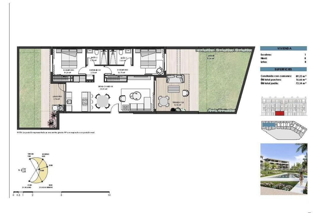 NEW BUILD RESIDENTIAL IN PRIVATE GATED RESORT IN PROVINCE OF MURCIA New Build residential complex consist of 42 luxury apartments and penthouses with 2 and 3 bedrooms, 2 bathrooms, open plan kitchen with spacious living room, fitted wardrobes and terraces. Apartments on the ground floor having private garden, middle floors apartments with terrace and penthouses with a large private terrace. This exclusive development has a landscaped communal area which boasts a fabulous contemporary pool, social club and green areas. All apartments come with underground parking and storage room. Located in a private gated resort, with a main access entrance and 24 hours security. The resort is designed around an impressive 126.000 m2 green area. It comprises walking and cycling paths, sport facilities, paddle and tennis courts, a mini-golf course, gardens, dog parks, leisure areas, clubhouse. Also in the central area is the jewel of the resort, a crystal-clear artificial lake of almost 17.000m2 of water surface, surrounded by white sandy beaches and palm trees, bringing a piece of the Caribbean to the Murcia Region. There are 2 islands in the lake, one of them has its own bar, there are also beach Chiringuitos spread around the lake. The resort is strategically located less than 4 km from the beach and the town of Los Alczares, where you can practice various water sports, surrounded by several golf courses and the city of Cartagena less than 15 minutes by car and 22 km from Murcia airport, therefore having a wide cultural, gastronomic and sports offer within reach.