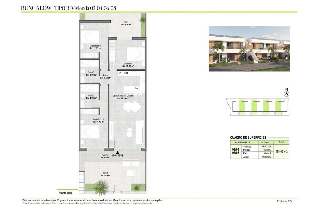 NEW BUILD BUNGALOW APARTMENTS IN CONDADO DE ALHAMA GOLF COURSE New Build exclusive complex of 18 bungalows apartments in Condado de Alhama. Beautiful bungalows with 2 or 3 bedrooms and 2 bathrooms,been designed with the wellbeing and quality of life of their inhabitants in mind. Residential offers spacious communal areas, including several communal swimming pools, one of which is heated, where you can enjoy moments of relaxation and fun. In addition, the complex has landscaped areas for strolling and enjoying the surroundings, as well as parking areas designed for the convenience of residents. The ground floor bungalows have 3 bedrooms and generous gardens, ideal for spending time outdoors and organising get-together with family and friends. The top floors, on the other hand, have 2 bedrooms and a spacious solarium that allows you to make the most of the sunlight and views of the natural surroundings. Condado de Alhama Golf Resort is a fantastic Golf Resort with many facilities and services . A shopping centre, a sports centre, a variety of bars and restaurants, supermarkets and over 25 communal swimming pools and gardens. Condado de Alhama Golf Resort has its own Jack Nicklaus designed golf course and is only 15 minutes from the beautiful beaches of Bolnuevo and Mazarron. Mazarron has over 35 km of coastline, much of which is unspoilt coastline. Numerous beaches in the Bay of Mazarron have been awarded the Blue Flag for their quality. Condado de Alhama Golf Resort is only 20 minutes from the new Corvera International Airport.