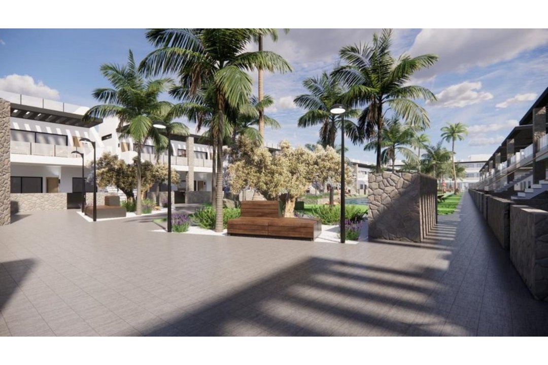 NEW BUILD RESIDENTIAL COMPLEX IN PUNTA PRIMA New Built residential complex of bungalow apartments and 7 detached villas in Punta Prima. The bungalows are distributed in three blocks. Ground floor bungalows with private garden and top floor bungalows with private solarium. Beautiful bungalow with 2 or 3 bedrooms, open plan kitchen with the lounge area, fitted wardrobes, utility room and spacious terraces. Each bungalow has parking space. The urbanization will offer nice green areas with a playground for children, a gym and two communal pools. Complex located a few meters from the centre of Punta Prima where you will find all the amenities you may need. In the surroundings you will find a wide range of nice restaurants, cafes, supermarkets, pharmacies and all the amenities you may need. Punta Prima, located just 5 km from Torrevieja, is characterized by good communication and health infrastructures, the proximity to Alicante airport, and the number of services open throughout the year. Just 10 km away we can find the golf courses of Villamartn, Campoamor, Las Ramblas, Las Colinas and Lo Romero, as well as the commercial centres of La Zenia and Habaneras.