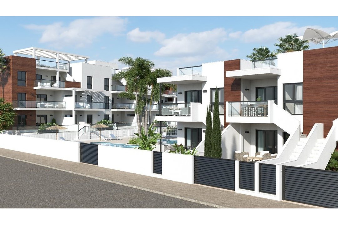NEW BUILD RESIDENTIAL COMPLEX IN TORRE DE LA HORADADA New Build residential complex of apartments, penthouses and bungalows with 2 and 3 bedrooms, 2 bathrooms in Torre de la Horadada only 300m from the beach. Bungalows on the ground floor with private gardens, penthouses and bungalows on the top floor with private solarium. All of them with fitted kitchen with high and low furniture. There is also a laundry area and pre-installation for air conditioning. The residential complex consists of communal swimming pools and garden areas. All properties has private parking. Torre de la Horadada is located south of Alicante in a beautiful location on the coast. The beautiful beaches of Torre de la Horadada and Mil Palmeras have fine sand beautiful promenade. There are lots of restaurants, bars and shops, also water sports, diving and snorkelling. It is well connected just 40 minutes from Alicante and Murcias Corvera airports, with large commercial shopping centres and multiple golf courses all within easy reach.