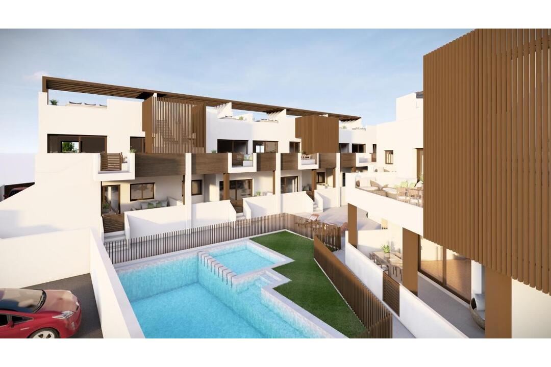 NEW BUILD RESIDENTIAL OF BUNGALOW APARTMENTS IN PILAR DE LA HORADADA New Build bungalow apartments located in Pilar de la Horadada. New Build project includes 16 bungalows with 3 bedrooms and 2 bathrooms, on the top floor with private solarium and on the ground floor with beautiful terrace and private garden. All the properties will have access to a communal swimming pool. Each property has parking space. It is located in a residential area close to all services. Pilar de la Horadada is a typical Spanish village in the most southern part of the Costa Blanca. The large main street has supermarkets, lots of shops, restaurants and bars and some lovely squares. The beautiful beaches of Torre de la Horadada and Mil Palmeras with fine sand promenade is just 5 minutes away. The airports of Corvera (Murcia) and Alicante are respectively 40 and 55 minutes away.