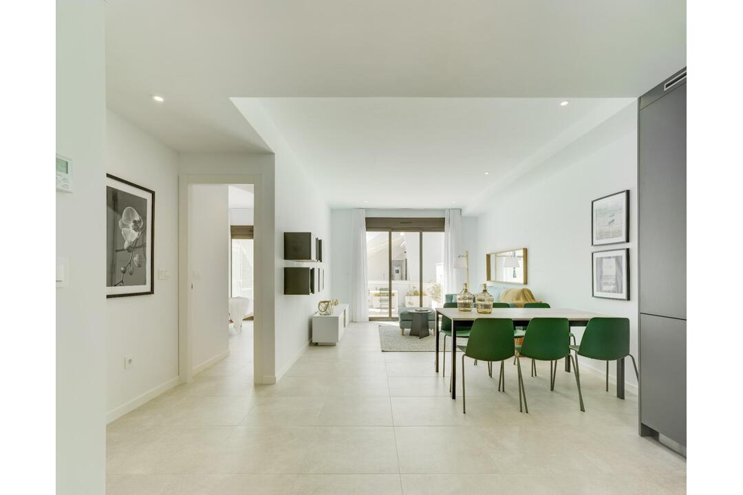 NEW BUILD RESIDENTIAL OF BUNGALOW APARTMENTS IN PILAR DE LA HORADADA New Build exclusive residential of 20 modern bungalow apartments in Pilar de la Horadada. You can choose 2 or 3 bedrooms bungalow apartments with 2 bathrooms. The ground floor units have large front and rear terraces and direct access to the communal pool and garden. The top floor properties have a very large rooftop solarium. The living space consists of a large open plan living / dining room and fully equipped kitchen with large sliding doors incorporating the outside space. The bedrooms have plenty of space, a built-in wardrobe and the main one has a large bathroom with a walk-in shower. The bathrooms are fully furnished and equipped with shower screens, cabinets and mirrors with pleasant low-level LED and mirror lighting and underfloor heating. All homes have a private parking space. Pilar de la Horadada is a typical Spanish village in the most southern part of the Costa Blanca. The large main street has supermarkets, lots of shops, restaurants and bars and some lovely squares. The beautiful beaches of Torre de la Horadada and Mil Palmeras with fine sand promenade is just 5 minutes away. The airports of Corvera (Murcia) and Alicante are respectively 40 and 55 minutes away