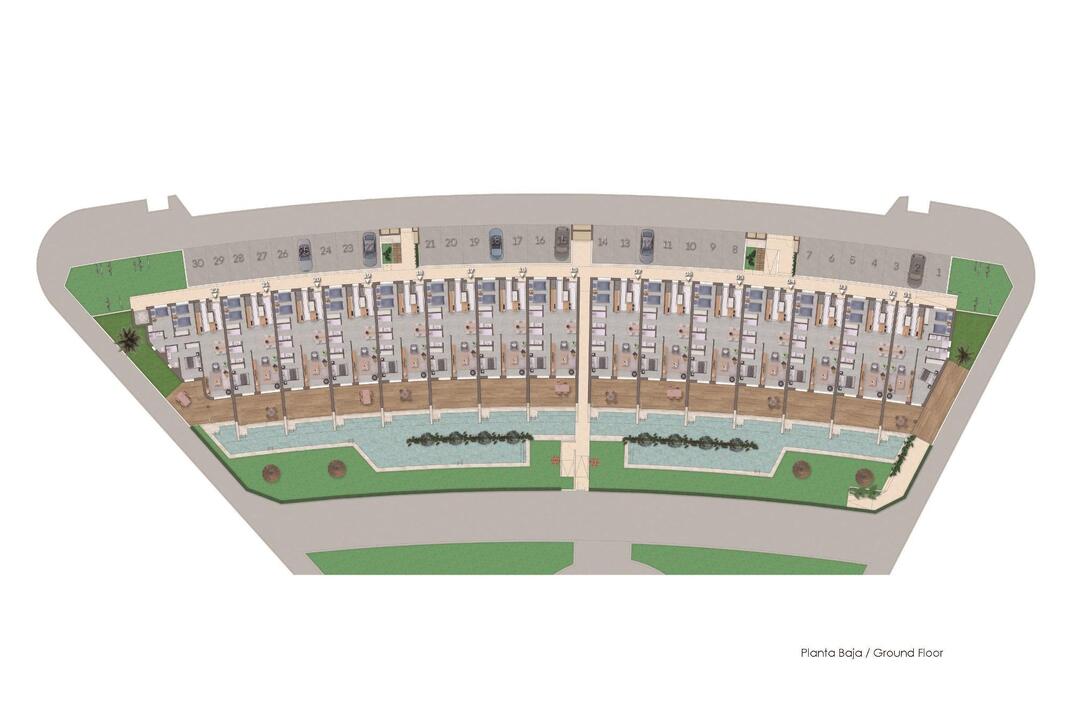 NEW BUILD RESIDENTIAL OF BUNGALOW APARTMENTS IN PILAR DE LA HORADADA New Build Residential of 30 bungalows, on the top floor with private solarium and on the ground floor with beautiful terrace and direct access to the pool. Modern bungalows with 2 and 3 bedrooms and 2 and 3 bathrooms, open plan kitchen with living room, fitted wardrobes. Each property has parking space. Residential with communal swimming pool. Complex located close to all the services, only 300 meters from the town centre of Pilar de la Horadada and less than 3 kilometres from the beach, in the heart of the Costa Blanca. Pilar de la Horadada is a typical Spanish village in the most southern part of the Costa Blanca. The large main street has supermarkets, lots of shops, restaurants and bars and some lovely squares. The beautiful beaches of Torre de la Horadada and Mil Palmeras with fine sand promenade is just 5 minutes away. The airports of Corvera (Murcia) and Alicante are respectively 40 and 55 minutes away.