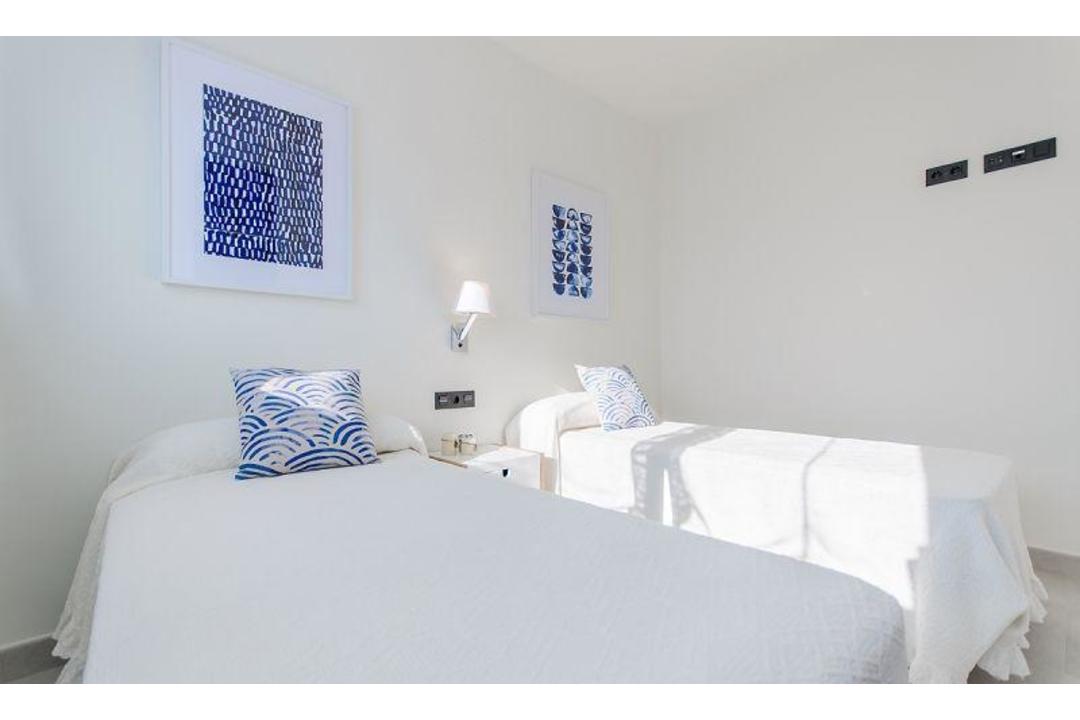 NEWLY BUILT BUNGALOWS UPPER FLOOR WITH PRIVATE SOLARIUM !!! New Project of 100 Bungalows on the upper floor with private solarium and ground floor with private garden located in a residential area of Los Balcones, with easy access, close to several golf courses, hospital and all services. Top floor bungalow with an area of 70.71m2 with 3 bedrooms with fitted wardrobes, 2 bathrooms, an open living room-kitchen-dining room of 22m2, a 7m2 terrace, a 57m2 solarium. INCLUDED: Underfloor heating in the bathrooms Excellent location surrounded by services. The houses are oriented towards the large community area, which has gardens and two swimming pools. In addition, there is an option of a garage and storage room in the basement for 6,000 Euros