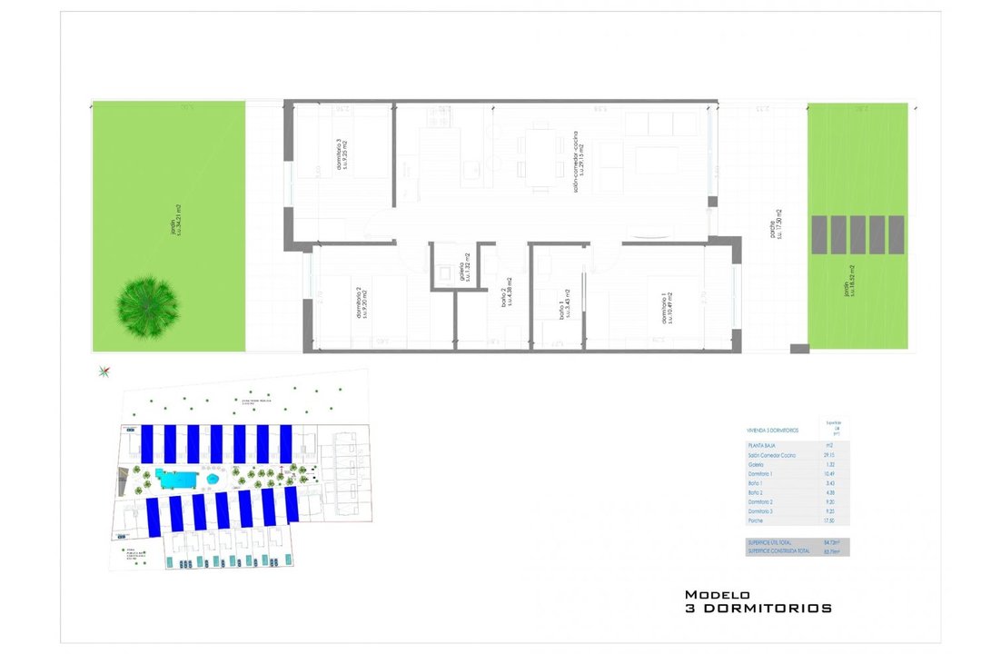 NEW BUILD RESIDENTIAL COMPLEX IN PUNTA PRIMA New Built residential complex of bungalow apartments and 7 detached villas in Punta Prima. The bungalows are distributed in three blocks. Ground floor bungalows with private garden and top floor bungalows with private solarium. Beautiful bungalow with 2 or 3 bedrooms, open plan kitchen with the lounge area, fitted wardrobes, utility room and spacious terraces. Each bungalow has parking space. The urbanization will offer nice green areas with a playground for children, a gym and two communal pools. Complex located a few meters from the centre of Punta Prima where you will find all the amenities you may need. In the surroundings you will find a wide range of nice restaurants, cafes, supermarkets, pharmacies and all the amenities you may need. Punta Prima, located just 5 km from Torrevieja, is characterized by good communication and health infrastructures, the proximity to Alicante airport, and the number of services open throughout the year. Just 10 km away we can find the golf courses of Villamartn, Campoamor, Las Ramblas, Las Colinas and Lo Romero, as well as the commercial centres of La Zenia and Habaneras.