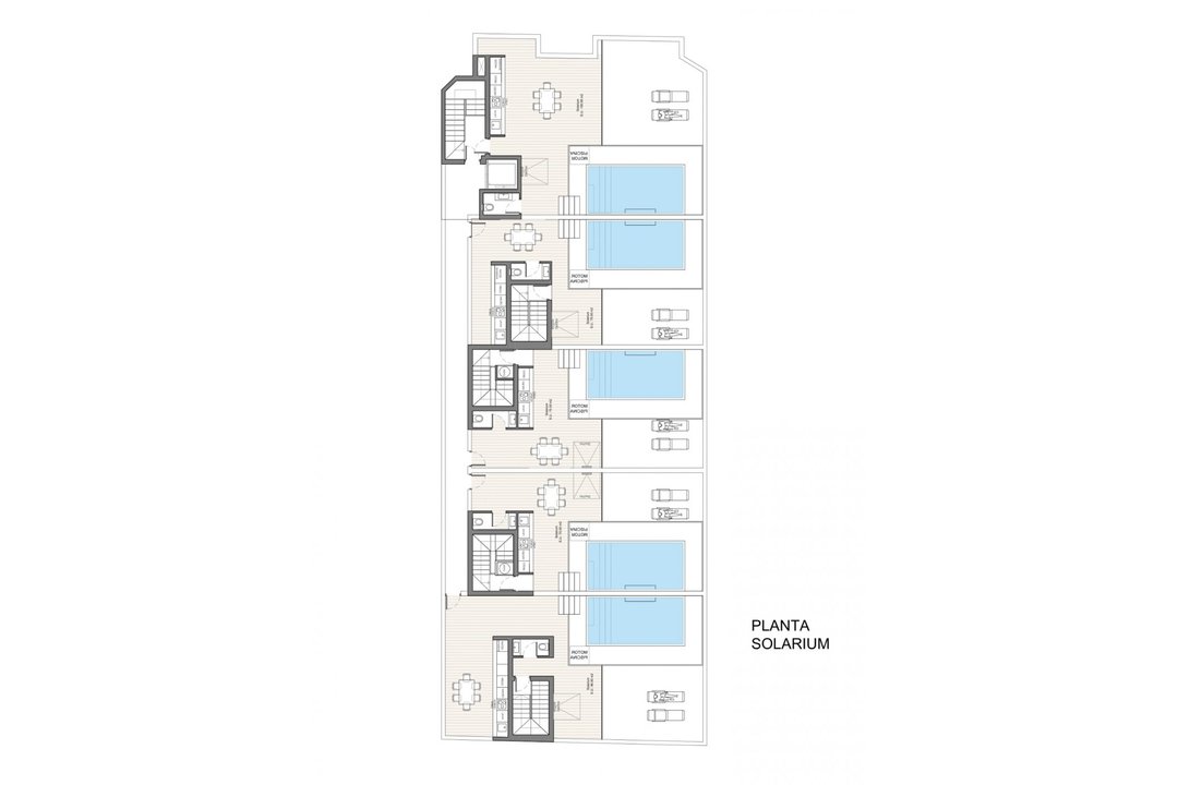 NEW BUILD PENTHOUSES IN BENIJOFAR New Build residential in the quiet area of Benijofar . Residential made up of 15 homes, 5 per floor, with 2 or 3 bedrooms and 2 bathrooms. The penthouses also have a large private solarium from 75.00 square meters with a toilet and pre-installation for a kitchen, where you can enjoy the beautiful summer sunsets. In addition, the residential has a large green area with a swimming pool for all owners, as well as parking and storage. Benijofar it is a lovely village with a charming church and all services such as supermarkets, pharmacies, banks, restaurants and natural park located very close to the villas. There are several golf courses close by as well as water parks in nearby Rojales and Torrevieja. The best beaches of Guardamar are only 10 minutes away by car with more than 11 km of white sand dunes and crystal clear waters. Benijfar located a few minutes from the N-332 and AP-7. Just 30 minutes from Alicante airport, 10 minutes from the beaches of Guardamar and Torrevieja.