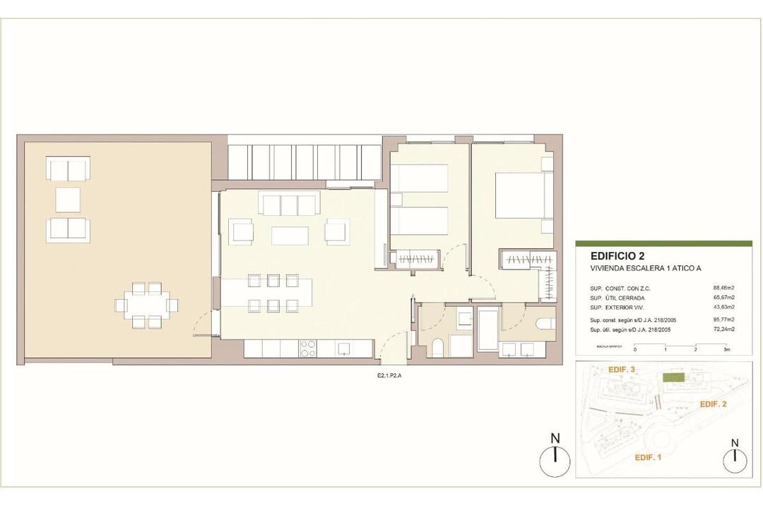 NEW BUILD RESIDENTIAL COMPLEX IN CASARES New Build residential complex in Casares consists of 47 multi-family apartments and penthouses of 1, 2 and 3 bedrooms. Each property has a garage and storage room included. Private residential complex with swimming pool, garden areas and children's playground. The design of this residential has sought to integrate the construction with its surroundings, taking advantage of the topography of the plot, which allows 360 views of the sea and the mountains. All the properties have fitted kitchens, large terraces and high quality features such as hot water by aerothermal energy and pre-installation for charging electric vehicles. Ground floor apartments with private garden. Residential complex is located in the municipality of Casares, next to the Natural Park of Sierra Bermeja and picturesque villages such as Manilva, Estepona and inland, Gaucn and Genalguacil. Casares is one of the most charming of the Andalusian white villages, located between the sea and the mountains. It perfectly combines more than 2000 metres of sandy beach and clean waters for bathers, surrounded by golf courses and for hikers, Sierra Bermeja. Only 6 minutes from the renowned Finca Cortesin Golf Club, as well as other nearby golf courses such as Sotogrande, Estepona and Marbella, make the golf offer very attractive. Fun and leisure are guaranteed, as well as tranquillity and nature. 519