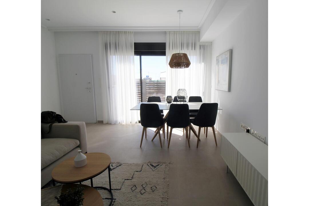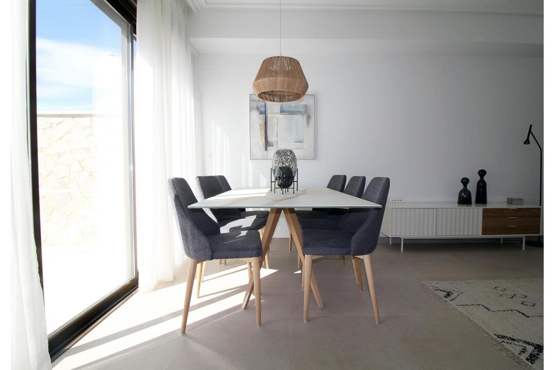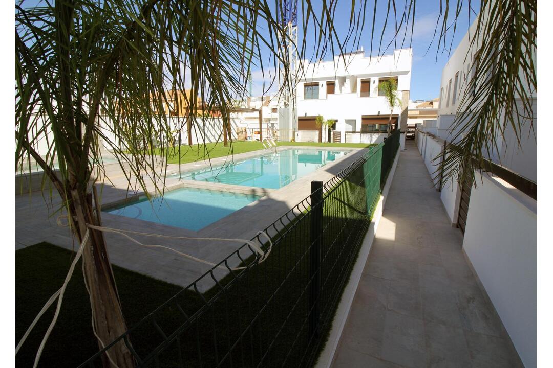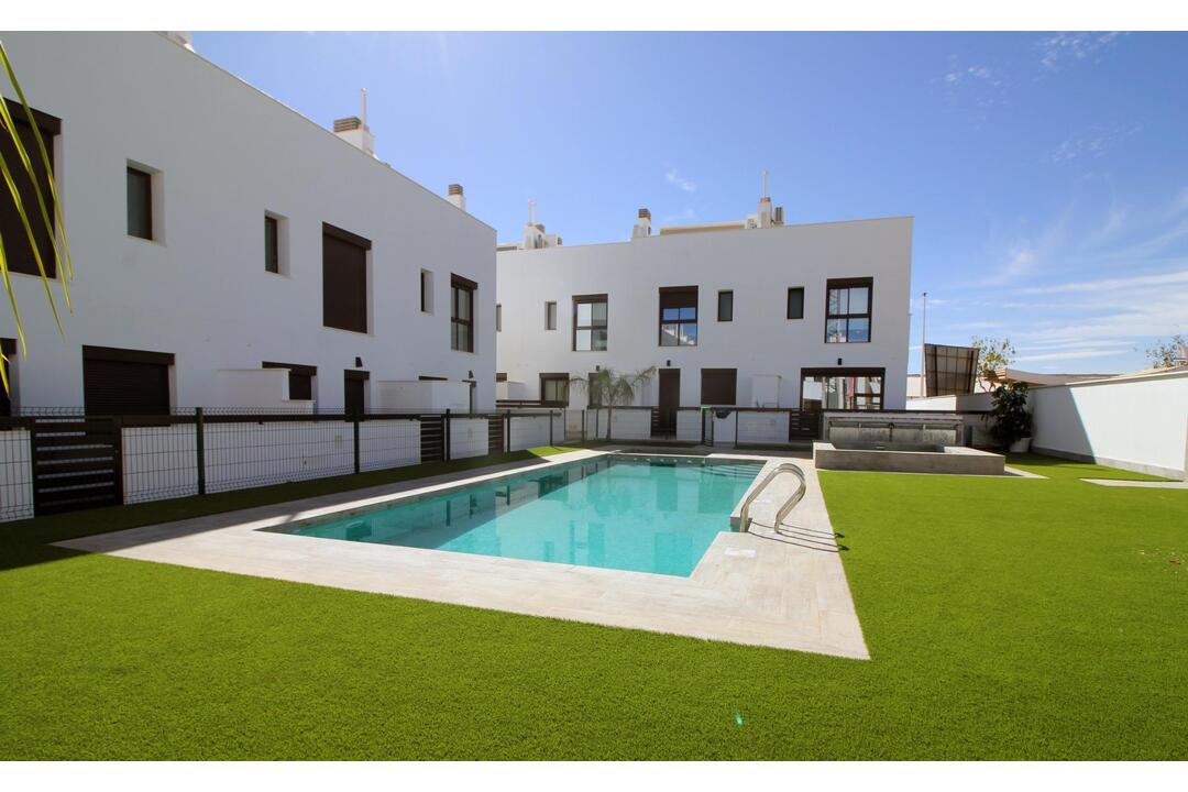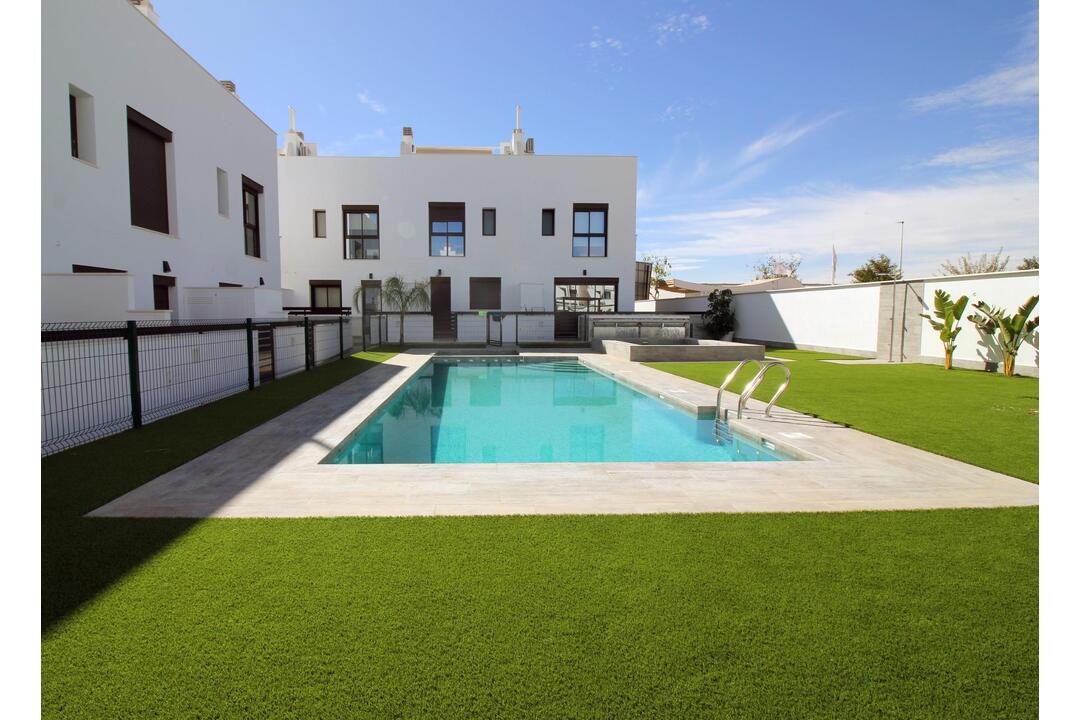NEW BUILD TOWNHOUSES IN PILAR DE LA HORADADA New Build modern townhouses built in a quiet part of Pilar de la Horadada with proximity to everything you need. Townhouses has 4 bedrooms, 2 bathrooms, open plan kitchen, living room with direct access to the cozy pool area, terrace at the back with parking space , terrace and large roof solarium. Pilar de la Horadada is a typical Spanish village in the most southern part of the Costa Blanca. The large main street has supermarkets, lots of shops, restaurants and bars and some lovely squares. The beautiful beaches of Torre de la Horadada and Mil Palmeras with fine sand promenade is just 5 minutes away. The airports of Corvera (Murcia) and Alicante are respectively 40 and 55 minutes away.
