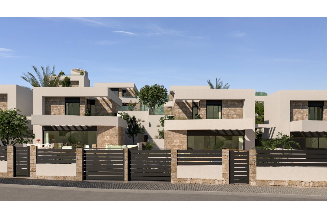 New modern villas with private pool, south / southwest orientation, clever interior design, panoramic views of the Mediterranean Sea. Located close to Puig Campana Golf and 10 minutes from La Marina Shopping Center with supermarkets, shops, bars and restaurants. 10 minutes from the famous and international beaches of Benidorm, and with quick access to other charming Mediterranean villages such as Villajoyosa, Altea, Calpe .. All plots have more than 300 m2 with parking space and motorised door, private pool with shower, artificial grass and garden finished with automatic irrigation. On the ground floor the villa has a large living-dining area and open kitchen with large windows, separate laundry room, 1 bathroom, 1 bedroom with built-in wardrobe and outdoor terrace area with covered porch. The first floor is distributed in 2 large bedrooms with fitted wardrobes and dressing room, 2 full bathrooms en-suite and with access to a large terrace with pergola. Excellent qualities and finishes included as standard in all villas: Motorised blinds LED lighting throughout the house Total integration kitchen appliances Shower screens in bathrooms Electric underfloor heating in bathrooms Solar panel installed for hot water production
