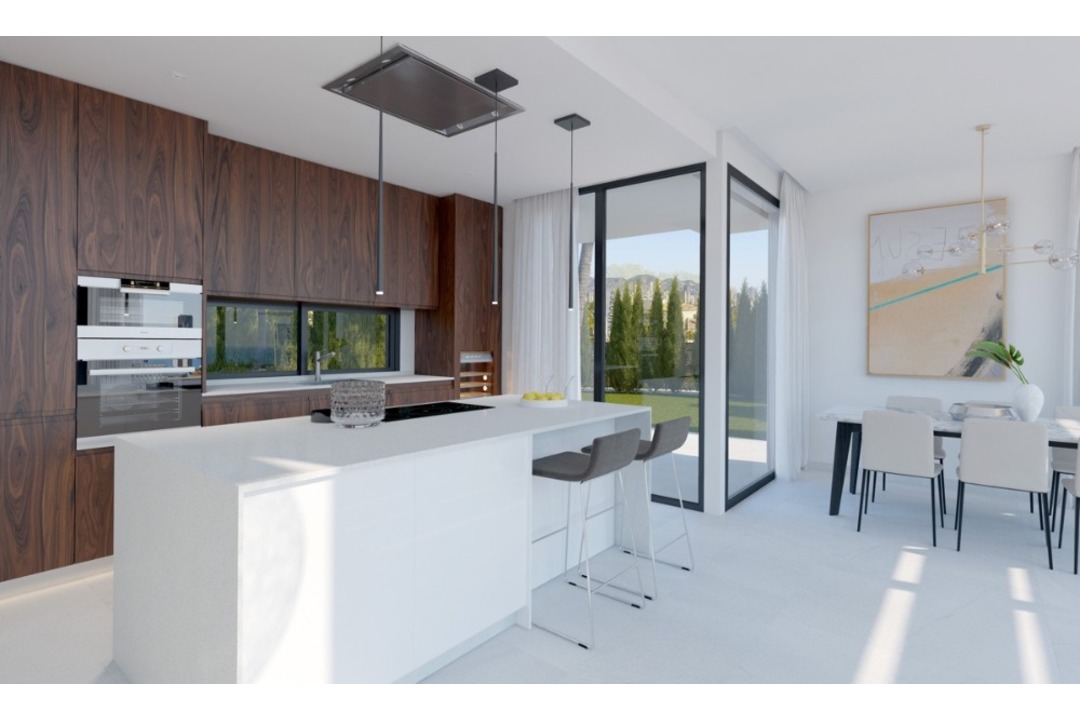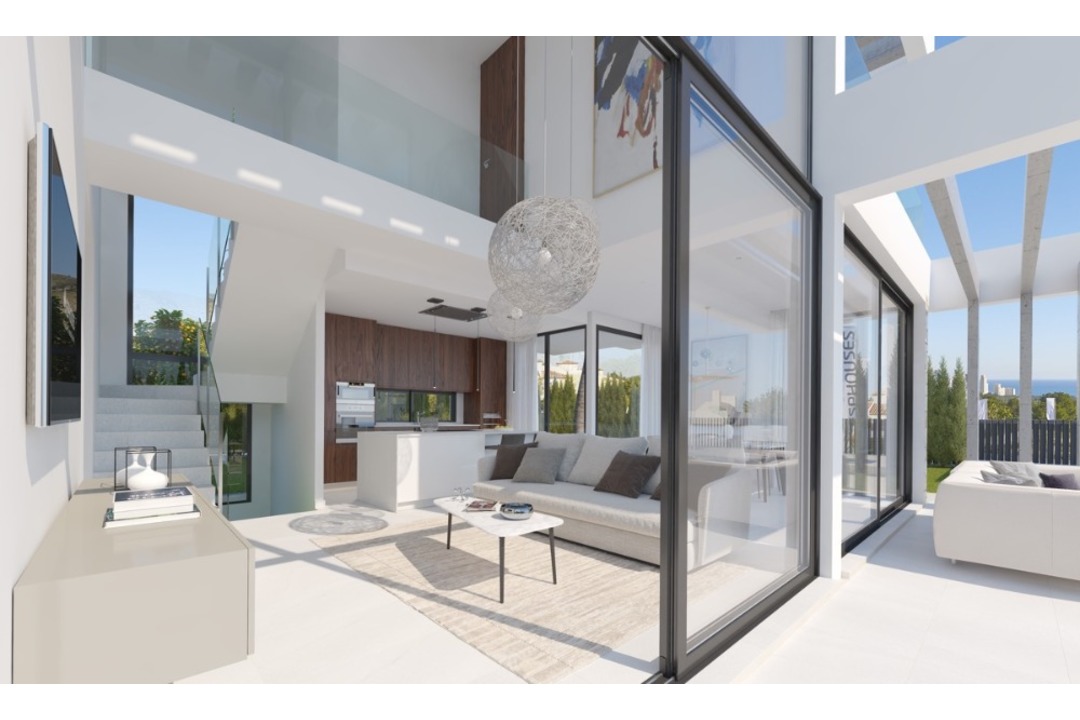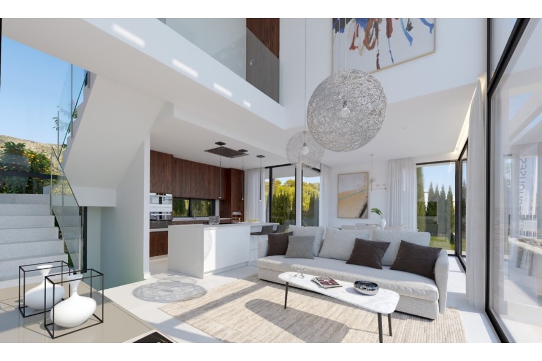 A new development of luxury detached villas built on spacious plots and all villas come with with 3 bedrooms and 3 bathrooms. The properties have spacious and bright rooms, fantastic views and distributions that allow you to make the most of each environment. On the ground floor there is an open plan kitchen living area, one double bedroom and a guest toilet. Upstairs there are a further two double bedrooms both with en-suite bathrooms and the master has a walk in wardrobe. Both bedrooms lead onto a large terrace where you have stunning sea views. The villas come with fully equipped kitchens, wardrobes in bedrooms, air conditioning by ducts, home automation system to remotely control the house, artificial grass in gardens to enjoy a perfect condition all year round or private pool.