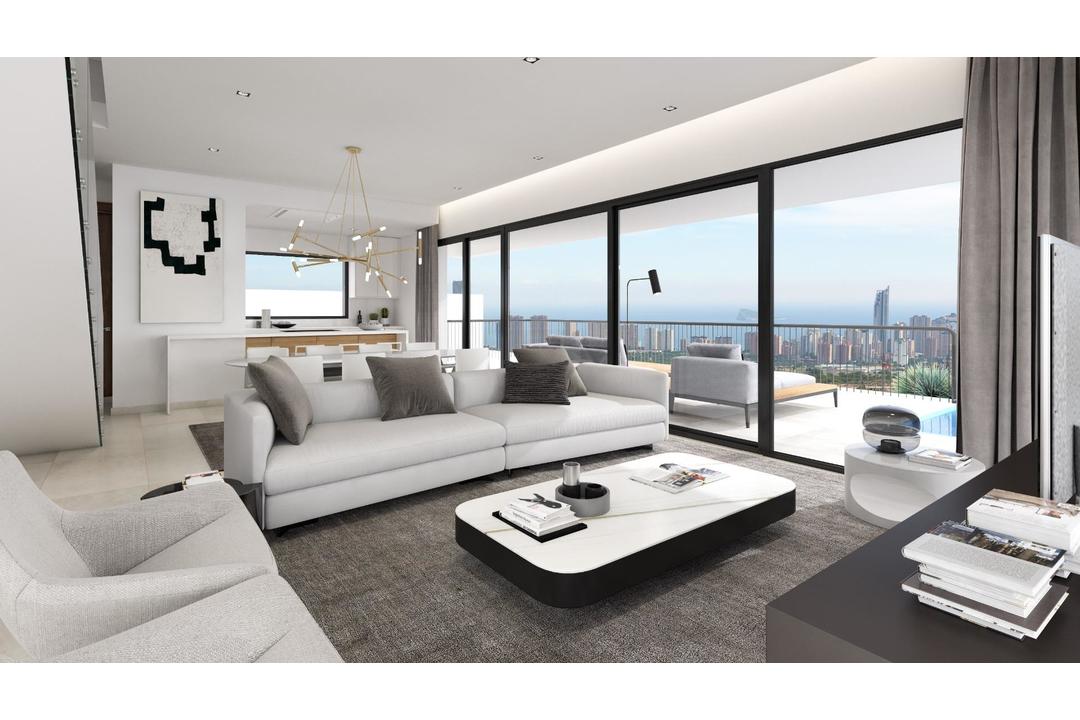 NEW BUILD LUXURY VILLA IN FINESTRAT WITH THE SEA VIEWS New Build Luxury villa in Finestrat with magnificent views of the sea and the Benidorm skyline. Villa distributed in 3 floors, has 4 bedrooms, 3 bathrooms and 1 toilet , a living room and a kitchen integrated in just one spacious room, and outside, you have a plot with more than 400 m2, with beautiful gardens and a big swimming pool where to fully live our mediterranean lifestyle. In the basement there is double garage, and a space where to create your guests house, the play room for the children, or your most personal area of the house. Finestrat located in the Marina Baixa region of the Costa Blanca, close to neighbouring Benidorm and about 40 kilometres from the city of Alicante and the international airport. Benidorm is just a five-minute drive from the properties and offers all the services you would need including shops, bars, restaurants, supermarkets, banks, pharmacies and several private international schools. Close to the beaches of Levante, Poniente and Cala de Finestrat, with more than 6km in length that are among the best in Europe awarded by the European Union with Blue Flags. All leisure services such as the theme parks of Aqua Natura, Terra Mtica, Terra Natura, Aqualandia and Mundomar, Sierra Cortina and Villaitana Golf courses, hiking and climbing in Puig Campana an incomparable natural setting or enjoy of nautical sports.