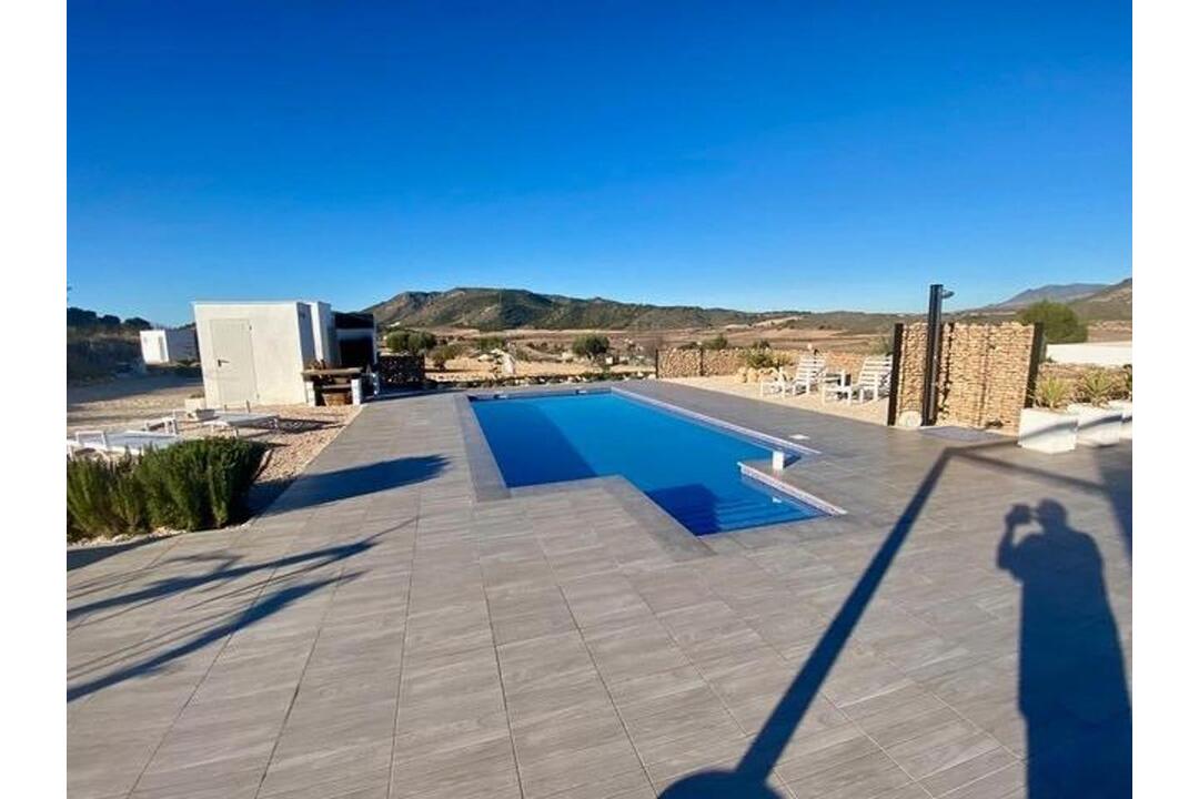 NEW BUILD VILLA IN HONDON DE LAS NIEVES New Build villa on a large plot in the municipality Hondn de las Nieves. Modern one level villa built on a huge plot of 10,000 m2, has 3 bedrooms, 2 bathrooms, guest toilet, open-plan fitted kitchen with spacious living-dining room, large floor-to-ceiling windows with a lot of natural light, built-in wardrobes. Private swimming pool. Garage for 2 cars. Located in a quiet and residential environment, this villa allows you to enjoy the privacy and tranquillity you desire, while being within walking distance to amenities, shops, supermarkets, restaurants. It is the perfect balance between serene seclusion and the convenience of modern living. In this urbanisation in Hondn de las Nieves, every day is an opportunity to connect with the world. Hondn de las Nieves is a town in the Valencian Community, Spain. It is located in the southwest of the province of Alicante, in the region of Vinalop Medio. The beaches and Alicante Airport are closely just 30 minutes drive away.