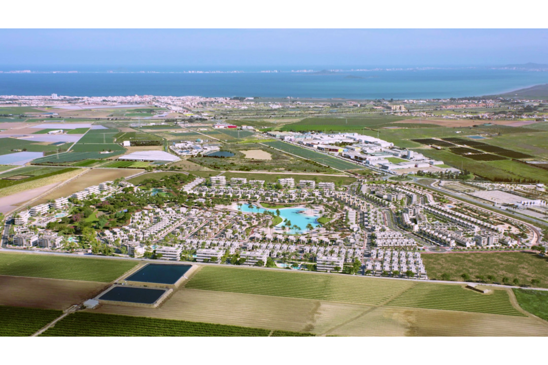 This is a truly unique development. A lagoon covering 16,000 sq meters of crystal clear water features in the middle of this complex with 2 islands, beach bar and surrounded by beautiful white sands. The complex fuses modern architecture with nature and luxury. In the complex there are sporting facilities all around - tennis, pitch and putt golf, gym, cycle and running lanes, play grounds and gardens throughout as well as many other sports and, of course, water sports will be available on the lagoon. This is for all year round living in an environmentally sustainable style. This beautiful complex will have villas, townhouses and apartments and the entire area has security gates and cameras. There will be several bars and a restaurant on the development and also a large commercial area is just off site. The area covers 7,000 sq meters with almost 4,000 mostly- Mediterranean style trees and plants. This unique complex, the only one like it in Spain, is perfect for holidays or for permanent living. Situated very close to the town of Los Alcazares with Mar Menor golf club very close-by and the beach only 4 kms away. Building has begun and the lagoon will be fully established by 2022. The whole complex will be finalised in 5 years time and already many properties are sold. The villa has a double bedroom downstairs with guest bathroom, open plan lounge, kitchen and living room leading onto the garden. The pool is an optional extra. Up stairs there is the master bedroom with en suite bathroom. In the basement there is a further 71 m2 with natural light that could be more bedrooms, games room etc.