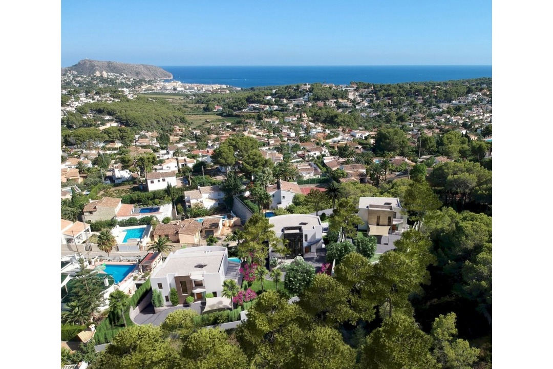 This new luxury modern villa with sea views is very well located in a quiet neighbourhood just 2.5 km from the beaches and the towm centre. The villa consists of 1 master bedroom with en - suite bathroom, guest toilet, kitchen and spacious lounge which leads to the 27m2 covered terraces leading to the pool area and the surrounding 77m2 terrace on the mail living area. Internal staircases lead to the first floor where there are 3 double bedrooms each with its own bathroom and two open terraces with a total of both of 22m2. In the semi-basement there is a large garage of 44m2 and outside there is a carport and plenty of space to park several vehicles.