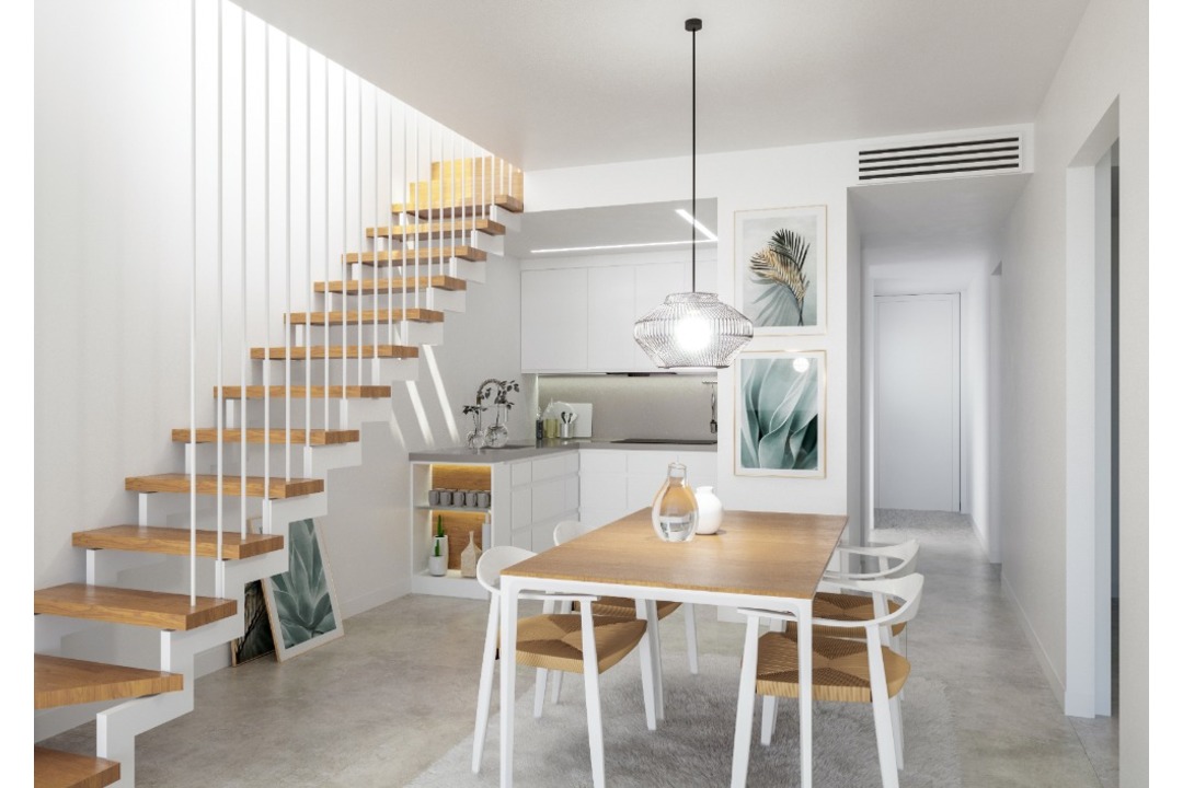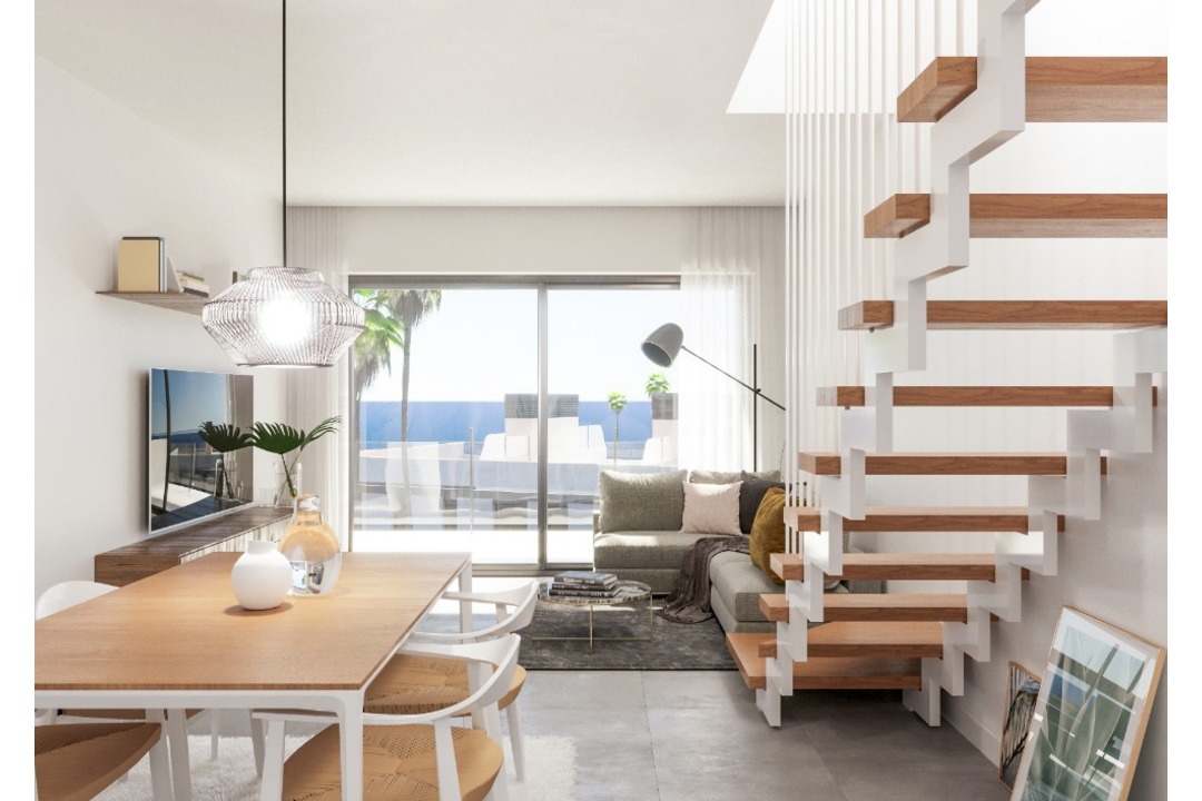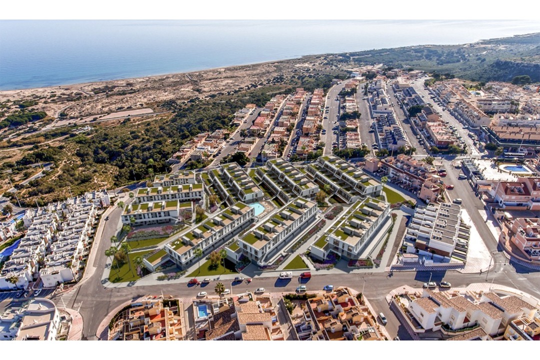 A new development of two and three bedroom apartments with sea views and direct access to the sandy blue flag beach of El Carabassi. The apartments have a carefully designed distribution and enjoy beautiful views of the sea, the beach, swimming pool and private gardens at the development. These new apartments are built to a very high standard and form a lovely communal area with pool, private underground parking, storeroom, garden areas, outdoor fitness equipment, parking area for bicycles and a childrens play area. The Alicante airport is just 15 minutes drive and with all amenities close by makes it a perfect property in Spain.