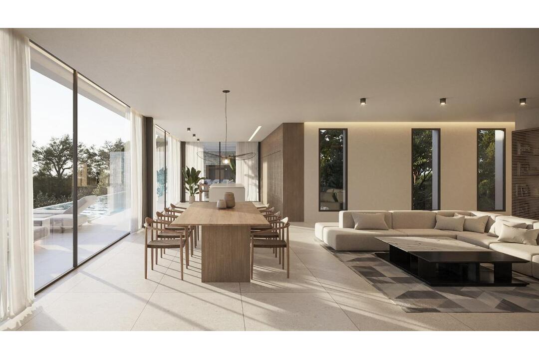 Luxury New Build Villas for Sale in Moraira-Teulada Near the Sea Exclusive Contemporary Villas in Moraira, Costa Blanca North Discover an exclusive residential project of just four luxury villas located in the prestigious Moravit area of Moraira within the municipality of Teulada on the northern Costa Blanca. This boutique development offers an exceptional opportunity to own a modern Mediterranean home just 900 meters from the sea in one of the most desirable coastal locations in the region. Moraira is known for its charming fishing harbor, relaxed atmosphere and beautiful beaches with crystal clear waters. Unlike many larger resort towns, Moraira has preserved its traditional character while offering excellent restaurants, boutique shops and leisure facilities. The surrounding area features scenic coastal coves, vineyards and natural landscapes, making it a perfect destination for both permanent living and luxury holiday homes. Avant Garde Architecture with Spacious Layouts The development offers four different villa designs with built areas ranging from approximately 250 m2 to 380 m2, all located on generous plots of more than 1000 m2. The architecture combines contemporary design with traditional Mediterranean elements such as white stucco walls, natural stone and warm wood accents. This villa model is distributed over two levels with a functional and elegant layout. The ground floor hosts the main sleeping area with three spacious bedrooms as well as a private garage for two vehicles. The upper level is designed as the main living space, featuring an open plan living room, dining area and designer kitchen with central island. Large floor to ceiling windows open the interior spaces to panoramic views of the surrounding landscape and the Mediterranean sky. A pergola extends toward the terrace to create a comfortable outdoor living area with barbecue space, ideal for entertaining or relaxing with family and friends. Luxury Finishes and Modern Technology Every villa is built with premium materials and high quality finishes to provide comfort, efficiency and contemporary style. Private infinity swimming pool Landscaped garden with trees and automatic irrigation system Built in LED lighting throughout the home Security entrance door Designer kitchen fully equipped with BOSCH appliances Underfloor heating and air conditioning system with independent thermostats AIRZONE climate control system Elevator connecting both floors Photovoltaic solar panel system of 4 kW All living spaces are oriented toward the terrace, garden and pool area, creating a natural connection between indoor and outdoor living. Prime Location Near Beaches and Coastal Attractions Playa de l Ampolla 1 km Cala Cap Blanc 1.2 km Cala del Moraig 7 km Club de Golf Ifach 5 km Moraira Marina and Port 2 km Alicante Elche Airport 90 km Valencia Airport 120 km The peaceful residential surroundings of Moravit offer green landscapes and beautiful views while remaining close to Moraira vibrant town center. Discover Luxury Living in Moraira These exceptional villas combine elegant Mediterranean design, spacious plots and a privileged location close to the sea. Contact us today to receive more information or schedule a private viewing and secure your new luxury home in Moraira on the Costa Blanca. 519