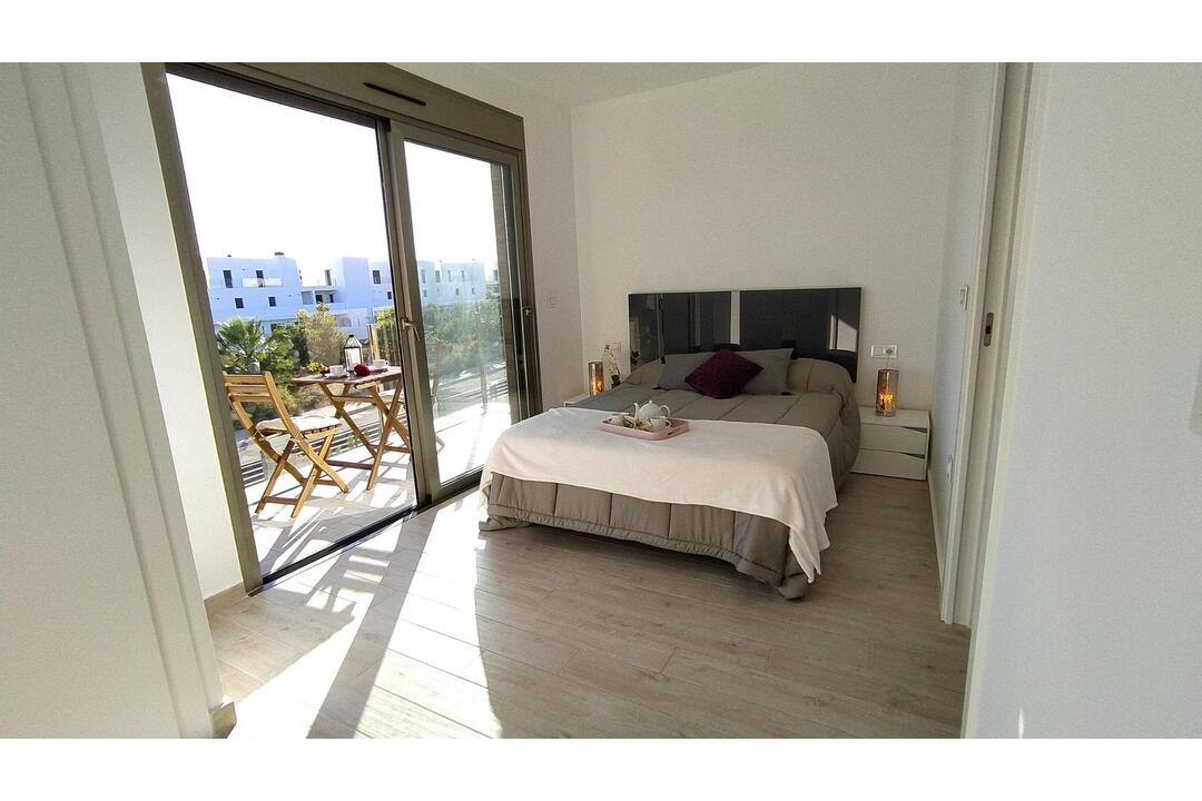 MODERN NEW BUILD VILLAS IN VILLAMARTIN New build villas with 2 models to choose from: 1 or 2 floors. All with 3 bedrooms and 2 or 3 bathrooms, private swimming pool, parking inside the plot and private solarium. The plot is fenced around the perimeter with access gates for vehicles and pedestrians. The surface of the plot is divided between the parking area finished with printed concrete, a lawn area and a paved area with the same flooring as inside. The interior carpentry has a high security armoured entrance door. Both the interior doors and the wardrobes are lacquered in white. In the kitchen we find furniture finished in white and quartz worktop in a colour matching the floor of the house. In the bathrooms there are shower trays and integrated glass screens as well as bathroom furniture and wall-mounted sanitary ware. The villa has pre-installations for ducted air conditioning. These fantastic properties are located close to Villamartin Plaza and the Villamartin golf course, where you will find numerous bars and restaurants, supermarkets, banks, a taxi rank and the local bus stop. The beaches of Orihuela Costa are only a 5 minute drive away, as is the new Zenia Boulevard shopping centre (the largest shopping centre in the province of Alicante). The airports of Alicante and Murcia are a 45 minute drive away.