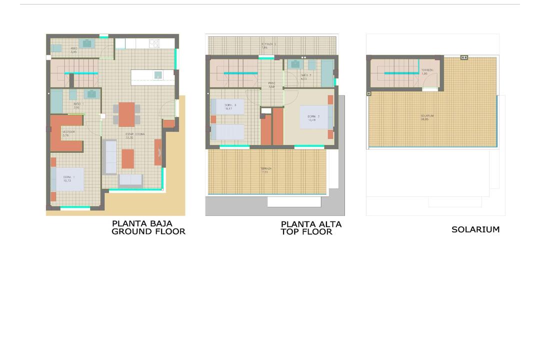NEW BUILD VILLAS IN PILAR DE LA HORADADA New Build villas located in Pilar de la Horadada. Villas build over 2 floors has 3 bedrooms, 2 bathrooms, guest toilet, open plan kitchen with the living room, basement, terrace and solarium, garden with private pool. Private parking in the basement. Fitted wardrobes in bedrooms with floor to ceiling white lacquered doors equipped with drawers, hanging rails and high storage area. Furnished dressing room. Pre-installation of air conditioning (split) in bedrooms and in lounge. Installation of underfloor heating throughout the house. Villas located a few meters from all services and the centre. Pilar de la Horadada is a typical Spanish village in the most southern part of the Costa Blanca. The large main street has supermarkets, lots of shops, restaurants and bars and some lovely squares. The beautiful beaches of Torre de la Horadada and Mil Palmeras with fine sand promenade is just 5 minutes away. In Pilar de la Horadada there is also a well-developed cycling and walking path network, and there is also a large offer of various sports activities. Lo Romero 18 hole golf course is just a short drive from town. The airports of Corvera (Murcia) and Alicante are respectively 40 and 55 minutes away.