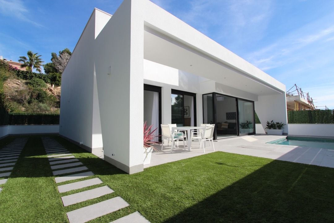New, key ready villas for sale located in Pinar de Campoverde. The villas are constructed over one level with open plan kitchen/dining, lounge leading onto the terrace and pool. There is a large Master bedroom with en-suite bathroom and two double bedrooms and a further guest bathroom. The villas are ready to move into at a great price.