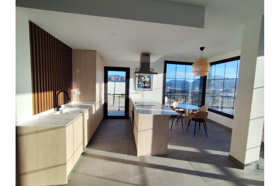 NEW BUILD SEMI-DETACHED VILLAS IN POLOP New Build modern semi-detached villas with several terraces and solarium, totally fenced, with parking area for vehicles and private swimming pool in Polop. Modern properties with 3 spacious bedrooms with built-in wardrobes (the main one on the ground floor, with bathroom and dressing room en suite), 2 spacious bathrooms, large living-dining room with open kitchen, spacious terraces. Kitchen equipped with base units and silestone worktops, with ceramic hob, oven, extractor hood, fridge, washing machine, dishwasher, and aerothermal heater. First qualities: interior carpentry in wood and white lacquered laminates, exterior carpentry in anthracite grey pvc with double glazing and thermal bridge break, and automatic blinds with aluminium slats, ceramic floors of 1st quality non-slip, smooth walls, security door with 5 anchor points, large built-in wardrobes. The city of Polop offers an amazing range of options for lovers of the great outdoors surrounded by nature and unparalleled peace. The municipality enjoys a Mediterranean climate with cooler temperatures and cleaner air, located less than 10 kilometres from Benidorm, Altea and their beaches. It stretches from the rivers Guadalest and Algar to the town of Villajoyosa, including the beaches of Albir and Benidorm; inland it borders Callosa and Guadalest.