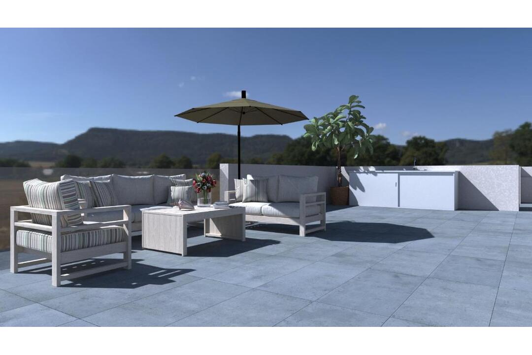 Luxury Single Level Villas with Private Pools in Balsicas, Murcia Exclusive New Build Development Discover an exclusive complex of 5 detached villas in Balsicas, each designed on one floor and featuring a private swimming pool, spacious terraces and a spectacular rooftop solarium. These contemporary homes offer 3 bedrooms and 2 bathrooms, combining comfort, privacy and modern style in one of the most peaceful and well-connected areas of Murcia. Modern Design and High Quality Features These villas stand out for their open plan layout, where the fully equipped kitchen blends seamlessly with the bright living and dining area. Every property includes: Fully furnished kitchen with appliances Complete bathrooms with furniture, mirror and shower screen Private pool Parking space on the plot Lighting included, except decorative lamps Pre installation of ducted air conditioning Summer kitchen on the solarium The single level design ensures maximum comfort, while the large solarium allows you to enjoy the sun all year round. A Peaceful and Well Connected Location Balsicas is known for its charming atmosphere, surrounded by nature, golf courses and wide open green areas. It is an ideal setting for those who enjoy outdoor living, tranquility and warm Mediterranean weather. The town offers all essential services, restaurants and leisure options within minutes. Distances to main points of interest: Murcia International Airport Corvera: approx. 22 km Alicante Airport: approx. 90 km Nearest golf courses: New Sierra Golf 4 km, La Torre Golf 8 km, Hacienda Riquelme 12 km Beaches of the Mar Menor: approx. 18 km Port of San Pedro del Pinatar: approx. 24 km Ideal for Living or Investing Thanks to its excellent climate, proximity to the Mar Menor and easy access to airports, Balsicas is an attractive destination for both permanent living and holiday investment. The area is especially popular with golf lovers and those seeking a relaxed lifestyle surrounded by nature. Take the Next Step These luxury villas offer everything needed for comfortable Mediterranean living. Contact us today and secure your place in this exclusive development.