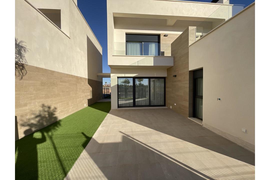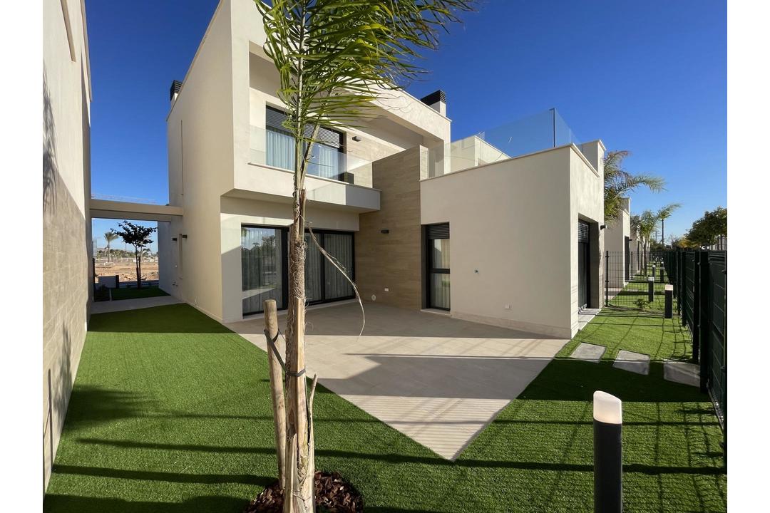 NEW BUILD VILLAS IN PRIVATE GATED RESORT IN PROVINCE OF MURCIA New Build modern contemporary and sustainable design villas, built to a high standard of quality and comfort. New Build development consists of 15 villas on various plot sizes ranging from 210m2 to 356m2. All the villas have the same built area and layout which consists of a double-height entrance and dining area, an open plan kitchen-living room area, 2 beds and 2 baths on the ground floor. On the top floor, there is the master bedroom with an ensuite bathroom and dressing room, plus 2 terraces. On the plot, there is a parking space and garden at the rear, a storage room at the side, and a porch and front garden. Provided with the latest technologies and high-quality materials, to provide these properties with a Class A Energy Performance Certificate. As properties are sold off-plan, there are various customization options available to select the combination of materials of your choice. On completion you will have installed everything you selected! Located in a private gated resort, with a main access entrance and 24 hours security. The resort is designed around an impressive 126.000 m2 green area. It comprises walking and cycling paths, sport facilities, paddle and tennis courts, a mini-golf course, gardens, dog parks, leisure areas, clubhouse. Also in the central area is the jewel of the resort, a crystal-clear artificial lake of almost 17.000m2 of water surface, surrounded by white sandy beaches and palm trees, bringing a piece of the Caribbean to the Murcia Region. There are 2 islands in the lake, one of them has its own bar, there are also beach Chiringuitos spread around the lake. The resort is strategically located less than 4 km from the beach and the town of Los Alczares, where you can practice various water sports, surrounded by several golf courses and the city of Cartagena less than 15 minutes by car and 22 km from Murcia airport, therefore having a wide cultural, gastronomic and sports offer within reach.