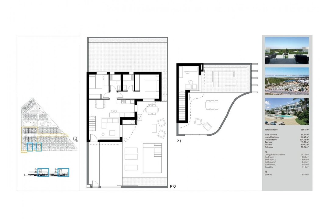 NEW BUILD RESIDENCIAL IN LOS BALCONES, TORREVIEJA New Build residential complex of semi-detached villas and bungalows located in Los Balcones with the views to the pink lake. New Build semi-detached villa has 3 bedrooms, 2 bathrooms, open plan kitchen with spacious living room, fitted wardrobes, private garden with the pool and off road parking space, private solarium. New exclusive residential with big communal areas; gardens, garden-gym, playground, 2 big communal swimming pools - one of them for adults, and the other one for children. Los Balcones is a small town located near Torrevieja south. Torrevieja is a Spanish town in the province of Alicante, on the Costa Blanca. It is known for its typically Mediterranean climate and coastline. It has boardwalks with resorts along its sandy beaches. The small Museum of the Sea and Salt houses exhibitions on the fishing and salt history of the city. In the interior, the Lagunas de La Mata-Torrevieja Natural Park has trails and two salty lagoons, one pink and the other green. Alicante airport located 40 minutes away and Murcia airport about 1 hour away.