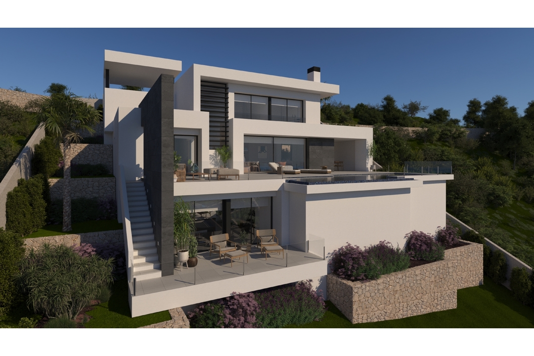 Modern villa for sale with private pool in Cumbre del Sol, between Alicante and Valencia city. Sea views, swimming pool, 3 bedrooms with option to extend to 4.